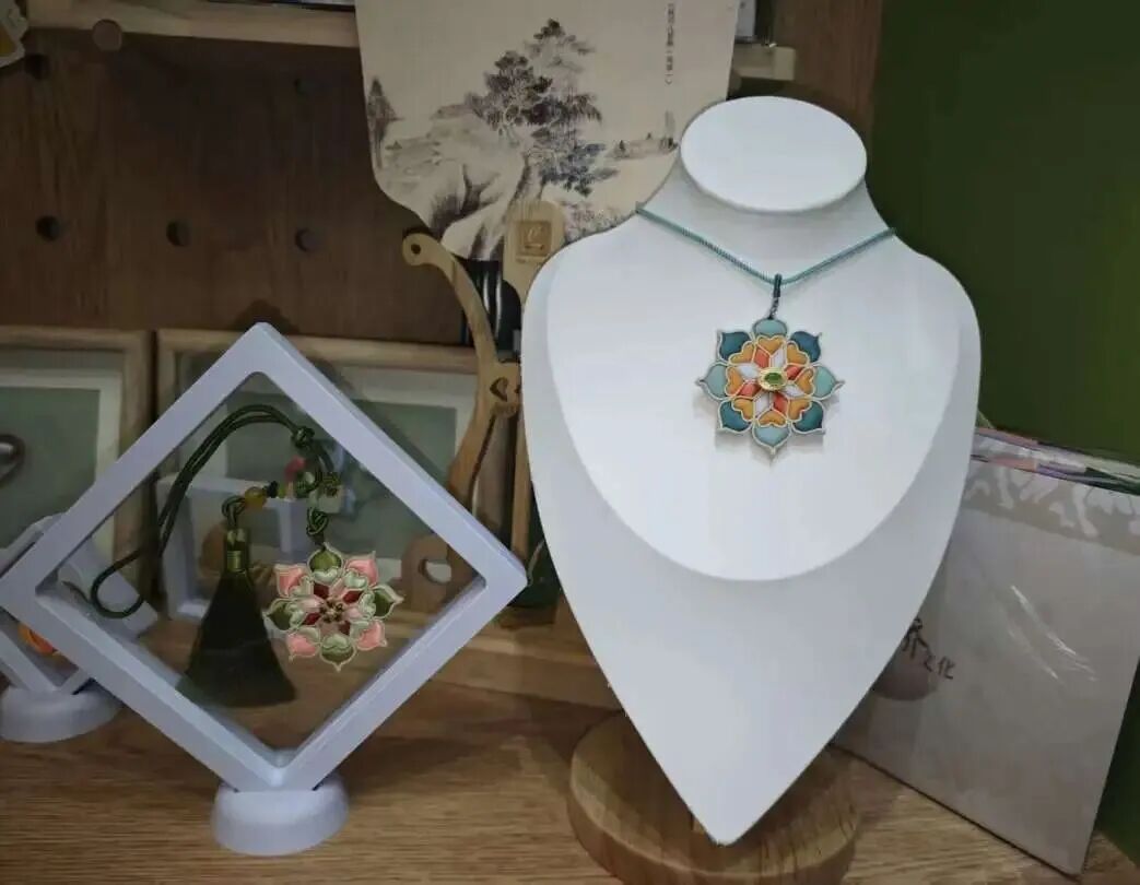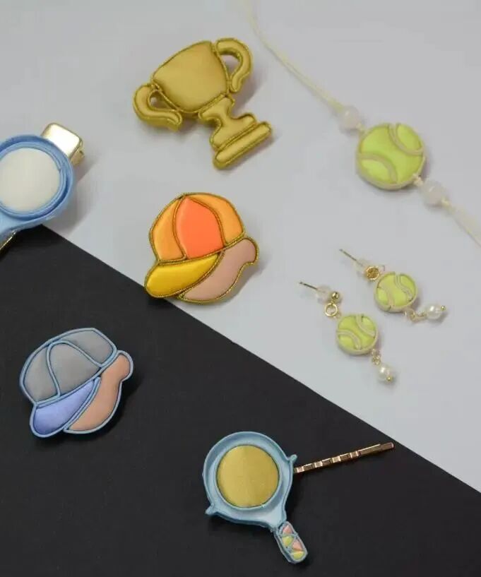 一枚枚精致的盘扣作品在大师赛场馆展厅内展出——这批作品由15位闵职院师生组成的创作团队历时两周完成,共计20余件,涵盖胸针、吊坠、耳环等形式,分为“马桥文化系列”与“网球运动系列”两大主题。前者取材于马桥古镇的传统纹样与非遗符号,将地域文化的厚重融入细密的绳线之中;后者则以网球拍、球场线、旋转轨迹为灵感,将运动活力融入传统技艺,让非遗艺术焕发当代气息。