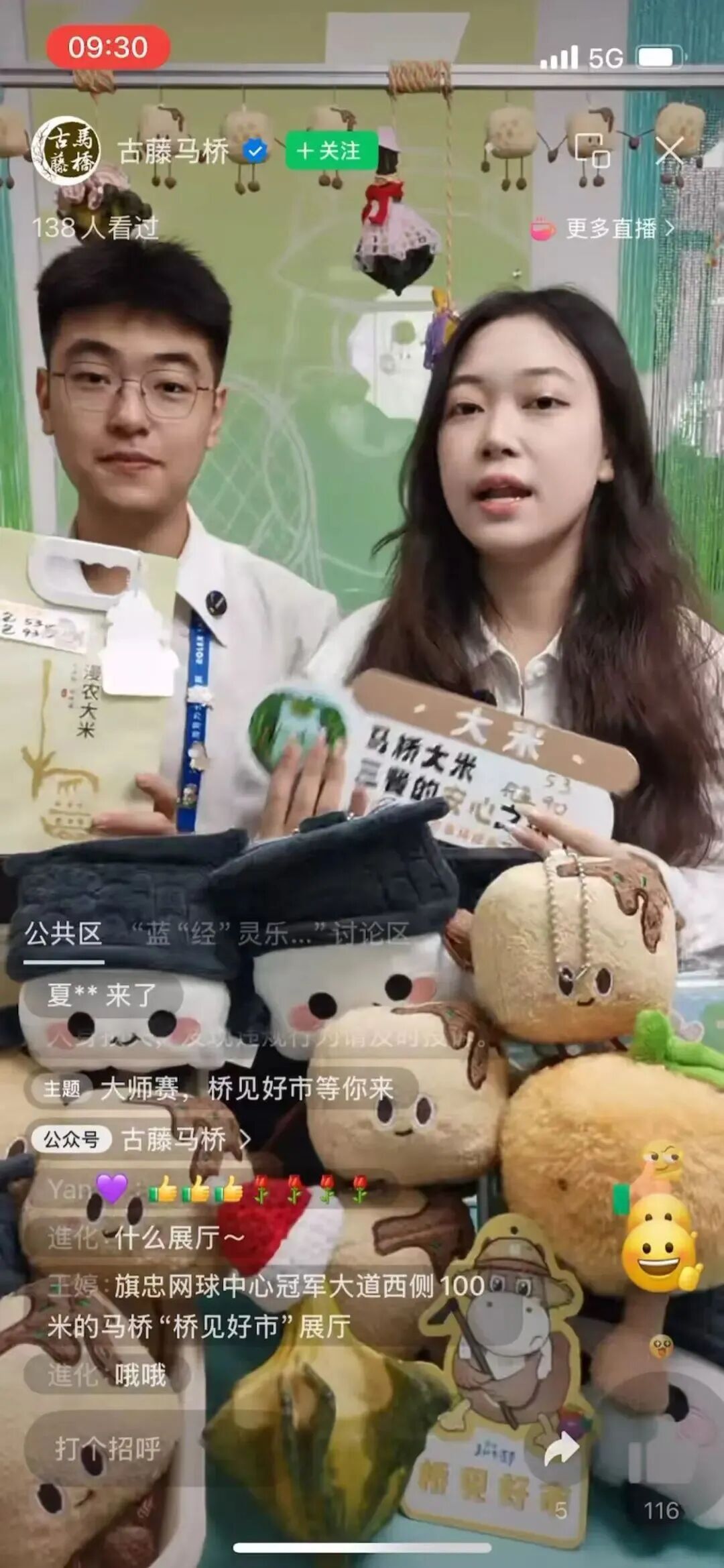 直播镜头下,他们将马桥特色文创与农产品娓娓道来:可爱的“马鸭Pin”徽章、创意“鸭型壶抱枕”、香气浓郁的马桥豆腐干、晶莹剔透的晴王葡萄、营养丰富的藜麦稻米……在年轻主播的讲解与互动中,一场场小而美的地方文化推介,成为大师赛场馆外的另一道风景。