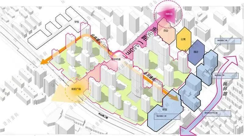 在设计团队看来,4米整层抬板设计能让社区立体起来,形成更有层次感的公共空间。从当天公布的效果图可以看到,项目采取了“繁华与静谧垂直分离”的空间格局,下层规划主题商业与社区配套,上层打造静谧宜居的“浮岛”庭院,实现人车分流与动静分区。