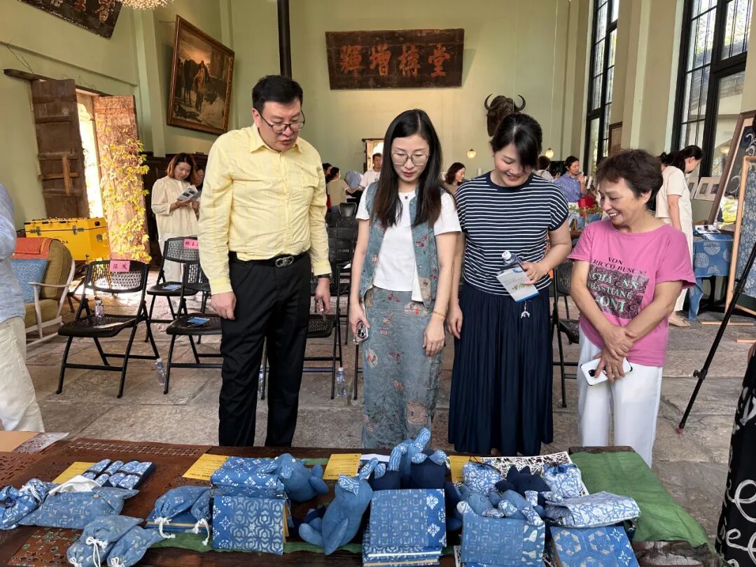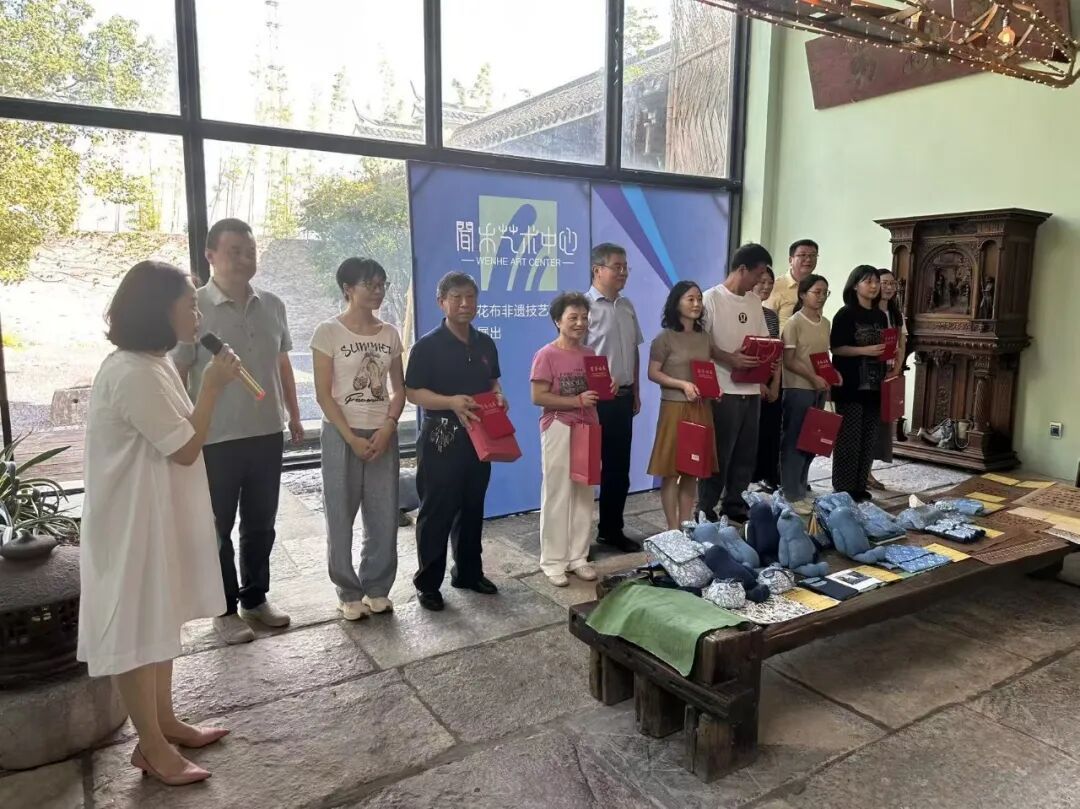 据闻禾艺术中心负责人周洁尘介绍,此次活动是蓝印花布非遗技艺传承第一届学员的成果展示。团队将挑选展览中部分学员作品,捐赠给泖港镇需要帮助的家庭;针对即将到来的重阳节,学员们还设计了适合老年群体的蓝印花布作品,计划在敬老爱老活动中送到他们手中。