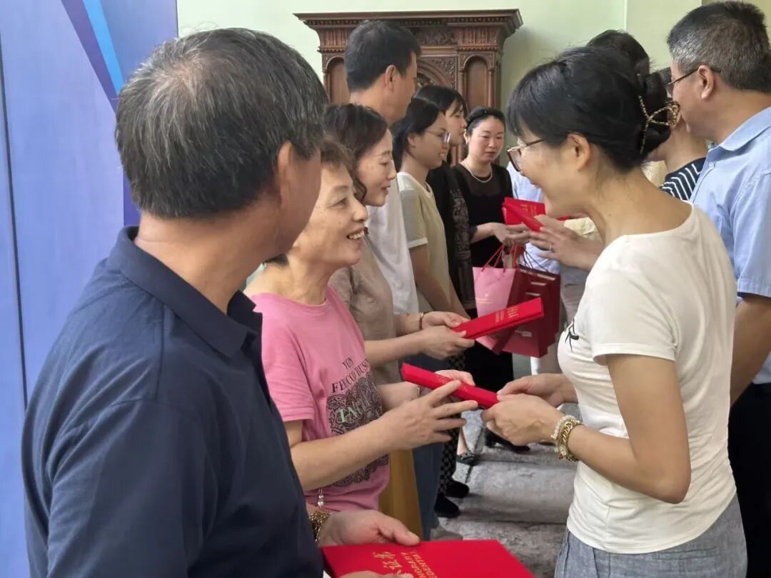 活动现场,6名表现突出的学员获得了“优秀学员”荣誉证书,新建村的学员顾馨婷便是其中之一。她带来的参展作品——唐半壁对襟短衫,以冰梅纹为核心设计元素。她告诉记者,设计图案时需要把复杂的古代纹样简化,这样才能更好融入现代服饰,贴合当下审美。“学习蓝印花布让我真切感受到了传统文化的魅力!”顾馨婷说。