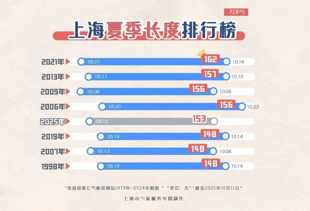 这个夏天耐力十足。上海5月12日入夏至今,夏季长度已达153天,且还在持续,夏天之长将毫无悬念地进入历史前三高位。而6月13日至今的4个月121天里,徐家汇站的气温一直保持在20℃以上,时间之长在历史同期也是绝无仅有的。