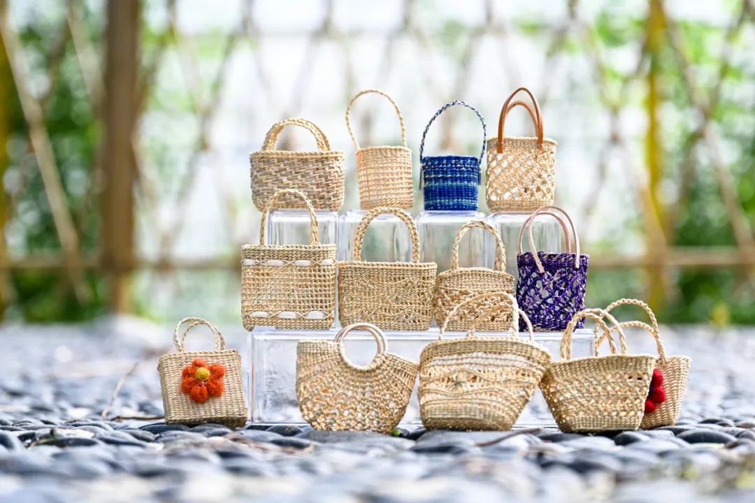 创新不止于盲盒。今年4月,5款徐行草编包在上海时装周太平湖主秀场惊艳亮相,标志着这项国家级非遗首次登上国际时尚舞台。传统的草编工艺搭配古风服装,在专业模特的演绎下古朴飘逸而不失灵动。更令人惊喜的是,徐行草编还曾与beast野兽派等知名品牌合作,推出草编香氛系列产品,让草编技艺融入现代生活。