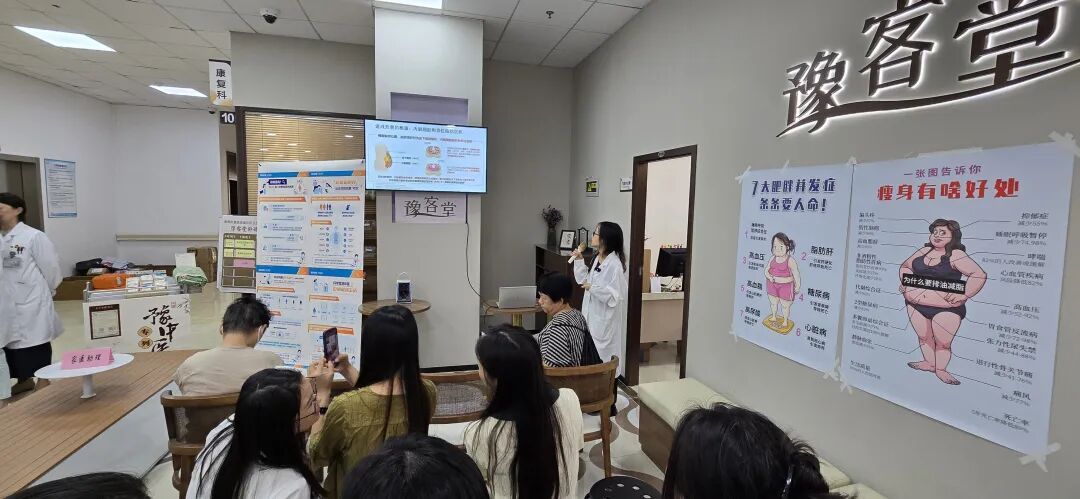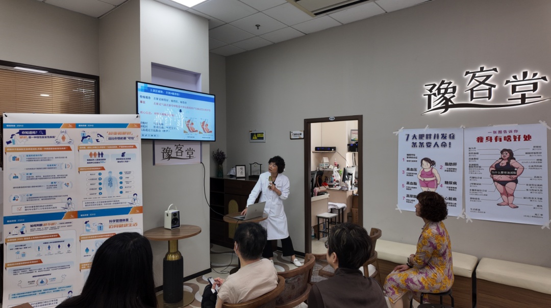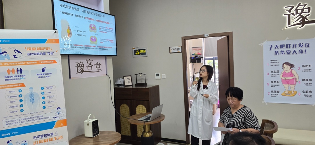 活动现场设在豫园街道社区卫生服务中心一楼。闻讯而来的居民早早落座,等待上海交通大学医学院附属第九人民医院专家的科普讲座。九院内分泌科主治医师陈颖超首先以《带您科学认识肥胖与健康》为主题展开科普。陈医生运用生动形象的案例、通俗易懂的语言,深入剖析了肥胖作为一种复杂的慢性疾病,是如何常与口腔健康问题、代谢异常等多种因素相互关联、相互作用的。居民们听得全神贯注,不时点头表示认同,有的还认真做着笔记。