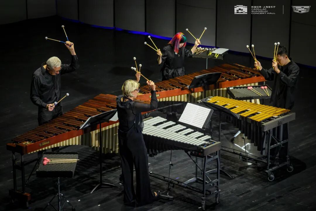 下半场“时间之旅”开启,两位青年打击乐演奏家杨怡萍与杨寅之的加盟,两架马林巴+两架颤音琴的组合,让音乐呈现更加丰富起来。
