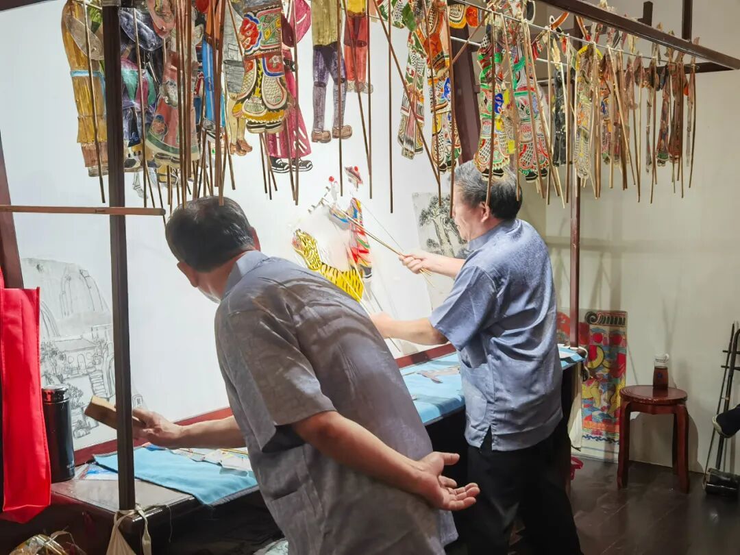 “那一次是松江皮影戏和陕西皮影戏的演奏团队在泗泾文化馆二楼交流演出,我去看了。当时的松江文化馆助理馆员见到我,问我要不要学。我说我要学的。”唐家昌回忆。就是这样一个契机让唐家昌加入了松江皮影戏的演出团队。