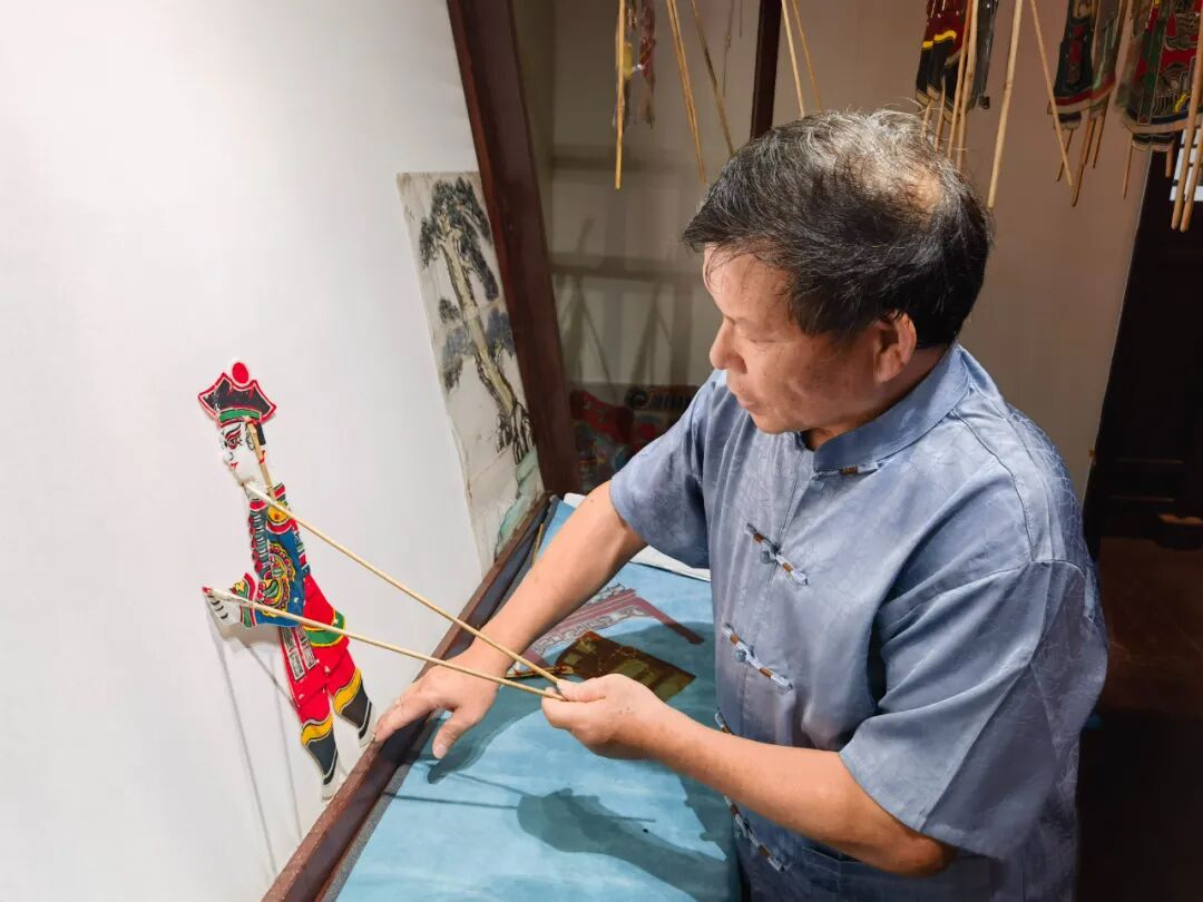 而在皮影戏演出团队,他还学会了创作演出剧本。“现在听得懂本地话的人越来越少了,我们还要多创作一些普通话的皮影戏剧本,让小朋友听得懂,让大家喜欢皮影戏。”唐家昌说。