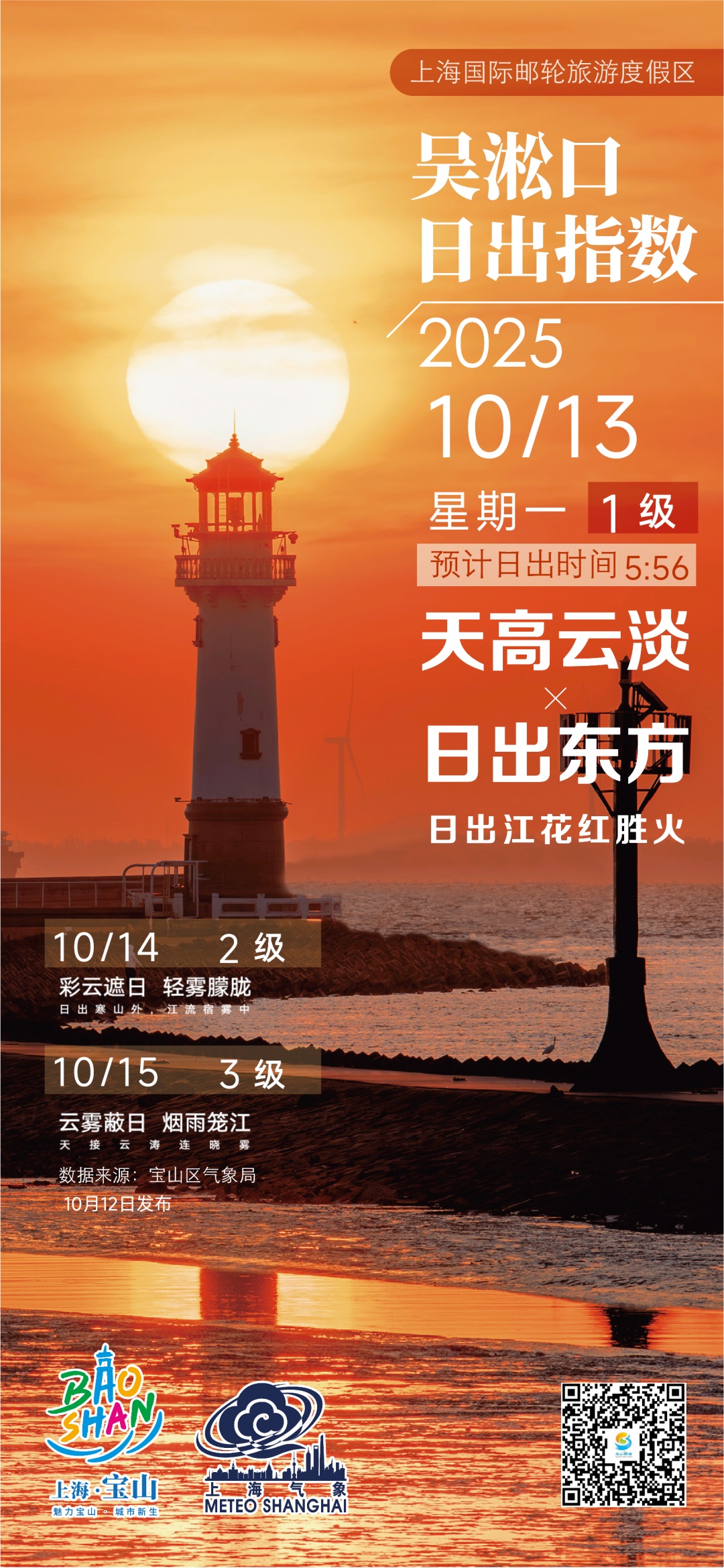【吴淞口日出指数】10月13日1级 天高云淡×日出东方