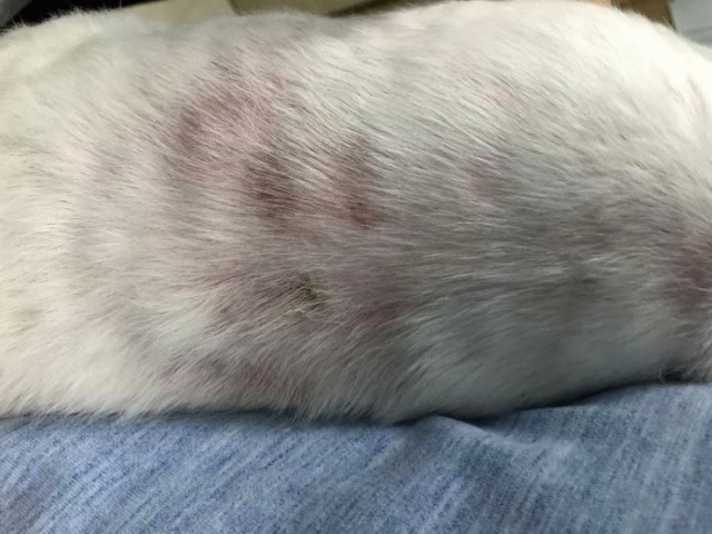 小林带着两岁的博美“雪球”,来到上海航厚宠物诊所浦江店就诊:雪球平时一直抓挠、瘙痒。洗完剃完毛后,发现雪球身上有多处红斑丘疹结痂。诊所的皮肤病专家杨志祥检查发现,它是对尘螨严重过敏。
