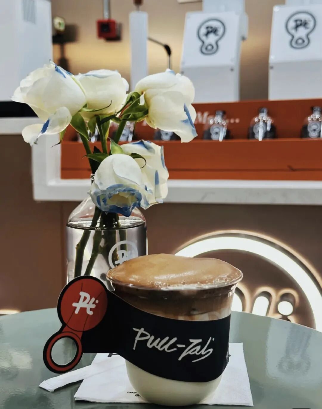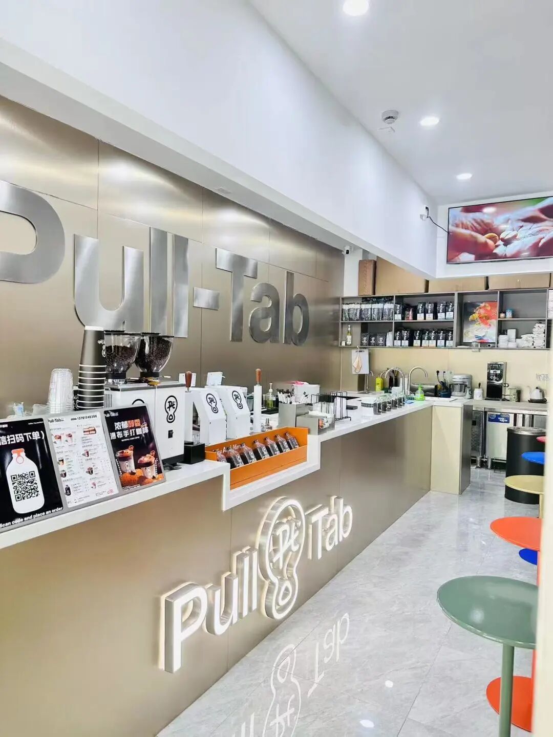 走到莘松路莘东路的街角,很容易就找到Pull-Tab拉环咖啡。沿街的小门面不算起眼,但玻璃门上贴着暖黄色贴纸“可以聊天”“可以休息”让人觉得十足暖心,推门时就撞见店主十一笑着迎上来,90后的她说话带着轻快的语气,刚开口就让人觉得像认识了很久的朋友。