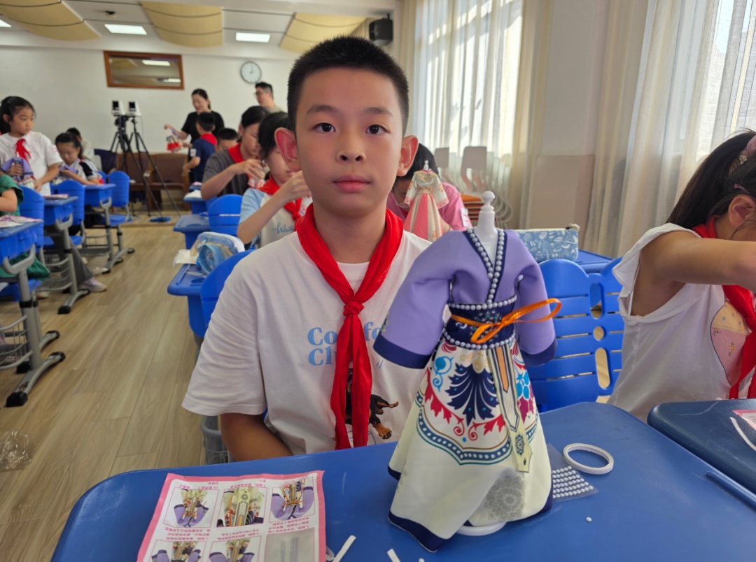10月10日推出 “汉服古韵之美” 主题活动。黄浦传统工艺研究会的专家老师带领学生溯源汉服根脉:从嫘祖首创养蚕制丝,到各朝代服饰折射的社会审美,再到 “交领右衽、隐结系带” 的核心特征与 “天圆地方” 的文化寓意,让学生读懂汉服背后的文明密码。而当身着汉服的机器人迈着精准步伐登台舞蹈,机械的利落与汉服的柔美完美融合,现场掌声成为对 “古今交融” 的最佳喝彩。动手环节同样精彩。学生在指导下组装汉服模型、搭配服饰,从拼接框架到为模型 “穿衣”,每一步都凝聚着对汉服结构的理解。当精致的汉服模型完成时,成就感与文化认同感在学生心中悄然扎根。