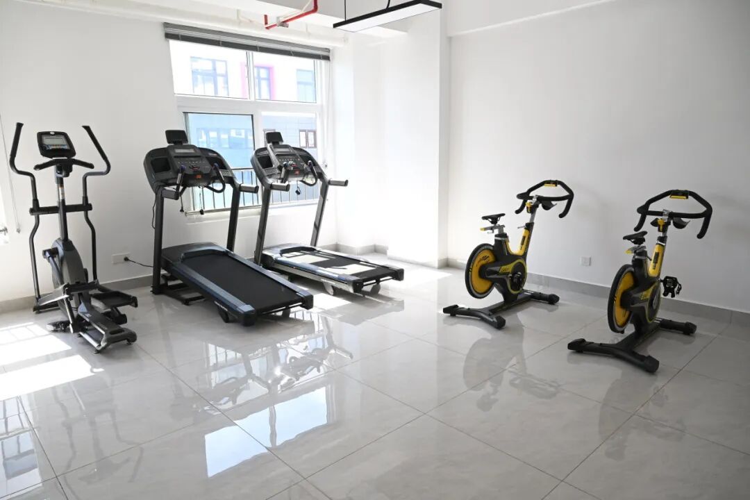 2层的休闲区内,有图书室、健身房等,设施设备齐全,可供员工们免费使用。