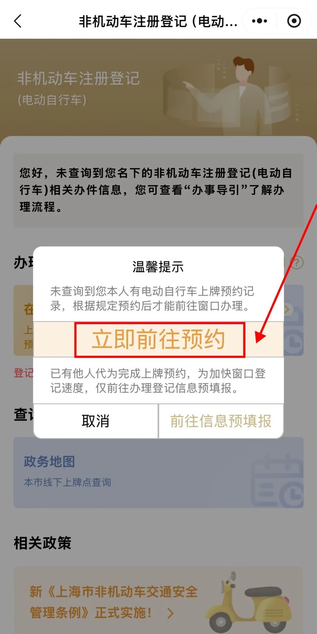 对于最近购置了新电动自行车的市民,若需办理注册登记,可通过“随申办市民云”内的非机动车注册登记(电动自行车)专区进行线上预约,从而轻松避免长时间的线下排队。