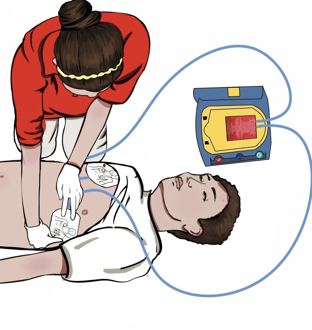 AED的使用出人意料地简单。开启设备后,按照电极片上的图示将其贴在患者指定的位置上,它便会自动分析心率,判断是否需要除颤。若提示需要除颤,操作者只需按下机器上的按钮,便会自动完成除颤。