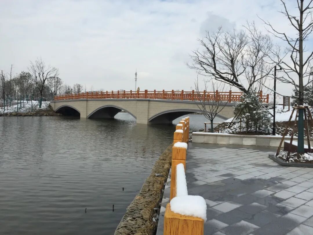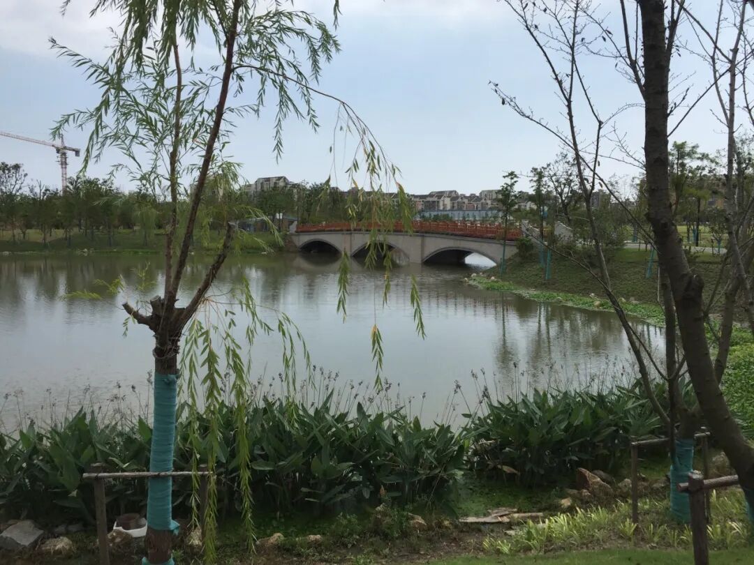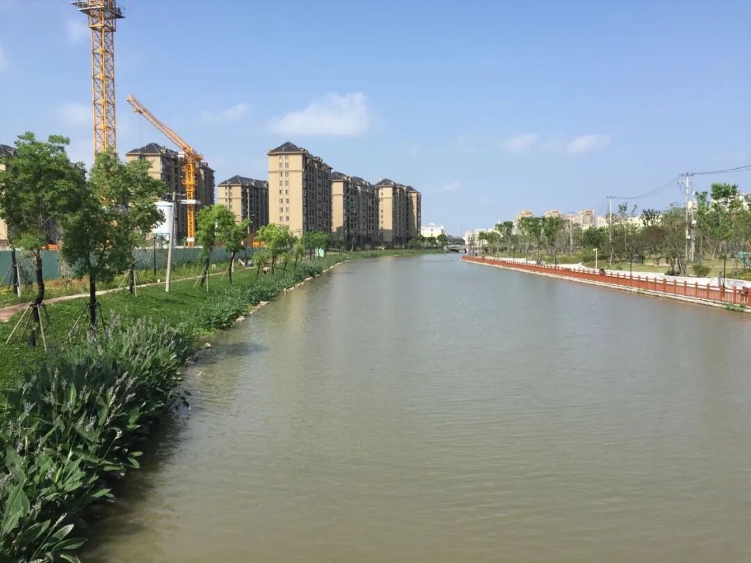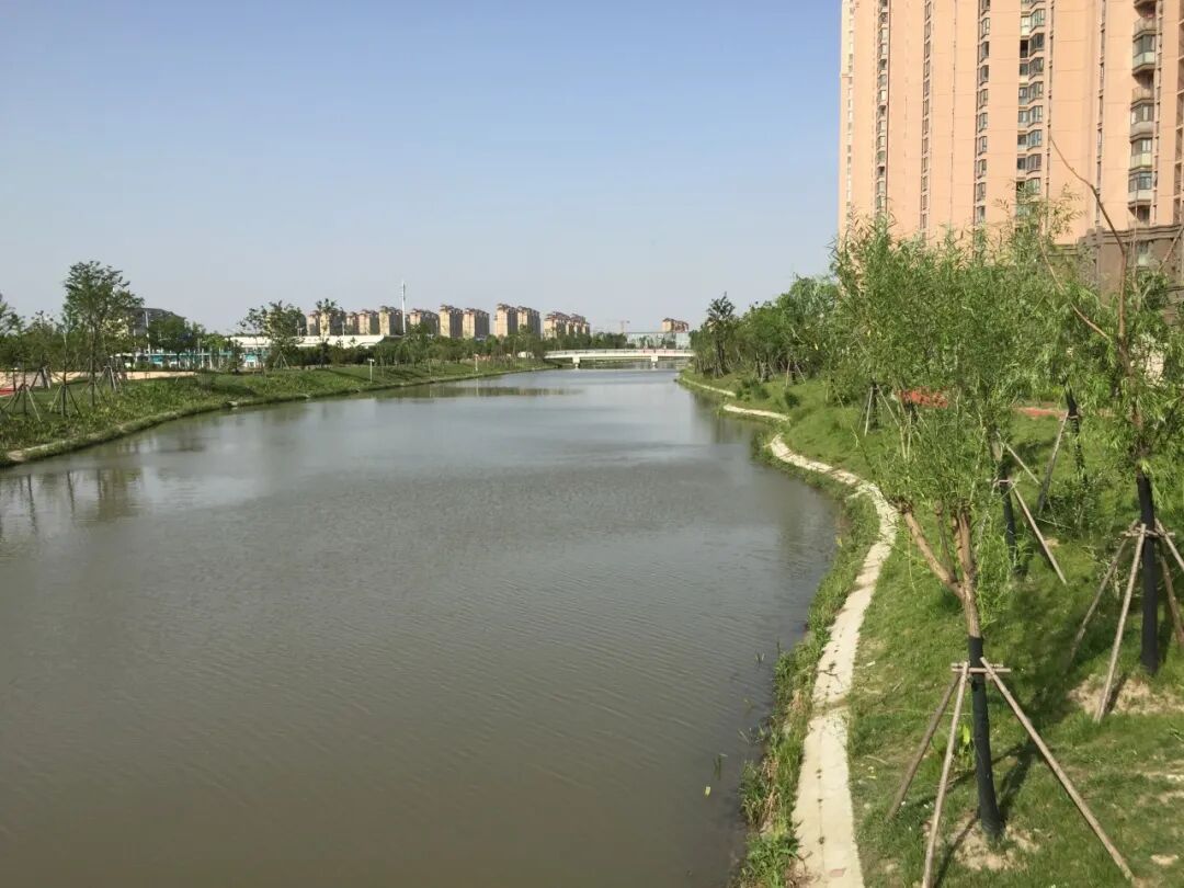 经过金山新城公共绿地项目建设,河道周边配备有健身步道、自行车道、亭廊、浮桥栈道、景观桥梁等,亲水设施卫生条件良好,布局合理,为周边居民提供日常健身、休闲场所。