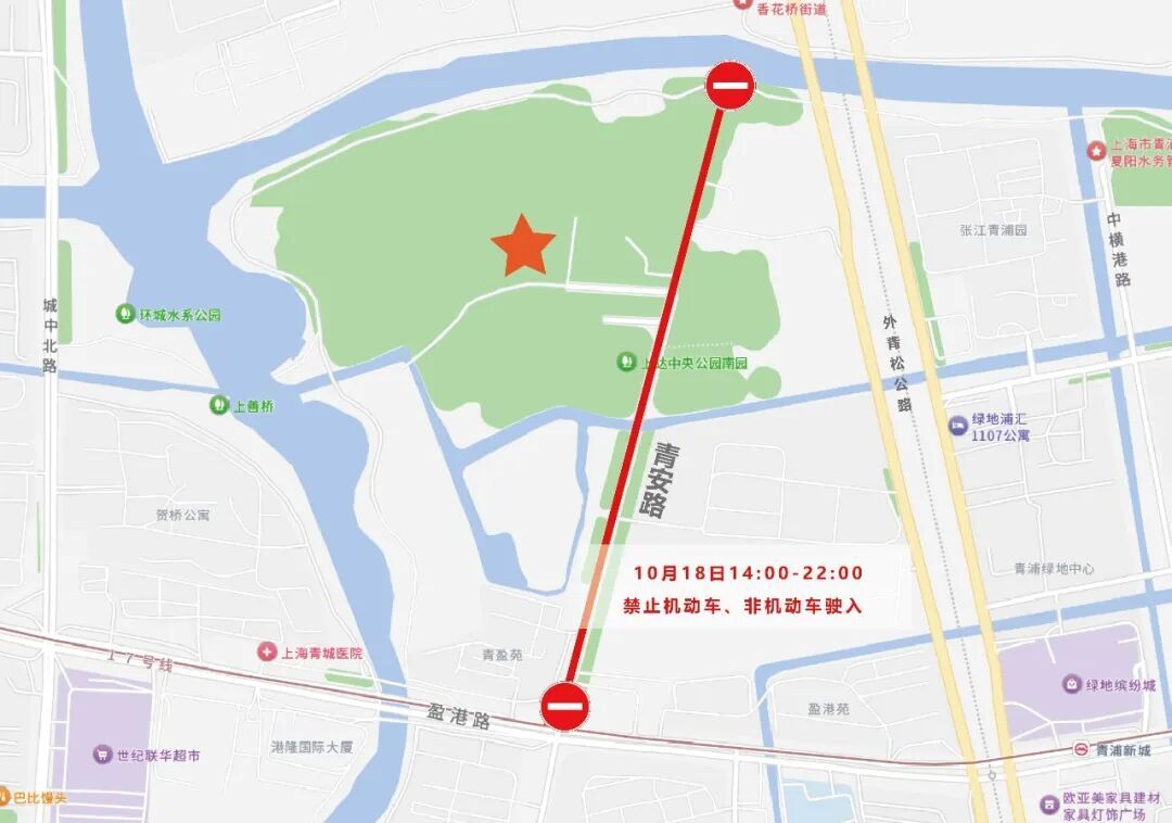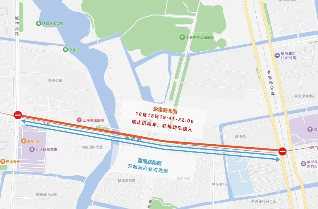 为最大限度减少对市民正常出行的影响,现将相关交通出行提示如下: 01 措施范围 (一)2025年10月18日14:00-22:00,青安路(盈港路-上达河段)临时性禁止机动车、非机动车驶入。 (二)2025年10月18日19:45-22:00,盈港路北侧(外青松公路-城中北路段)临时性禁止机动车、非机动车驶入。届时,南侧道路将开放双向临时通道,供过境车辆双向通行。 (三)2025年10月18日19:45-22:00,双盈路(城中北路-胜利路段)临时性实施东向西单向通行。 02 温馨提示 (一)音乐节进场与散场高峰时段,预计盈港路沿线及盈港路/青安路交叉口交通压力较大,可能出现排队缓行。建议市民提前规划线路,尽量避开上述区域,可选择崧泽大道、公园路、城中东路等其他路线绕行。 (二)如遇外青松公路/盈港路交叉口因临时性管理需要实施管制,可能导致外青松公路南北向通行受阻。届时,南北向过境车辆可经华青路、汇金路、城中北路、胜利路等道路绕行。 (三)公安交通管理部门将根据现场实际情况,动态调整临时交通管理措施的实施时间与范围。请广大市民服从现场民警指挥,按照交通标志标线指示有序通行。感谢广大市民的理解与配合。