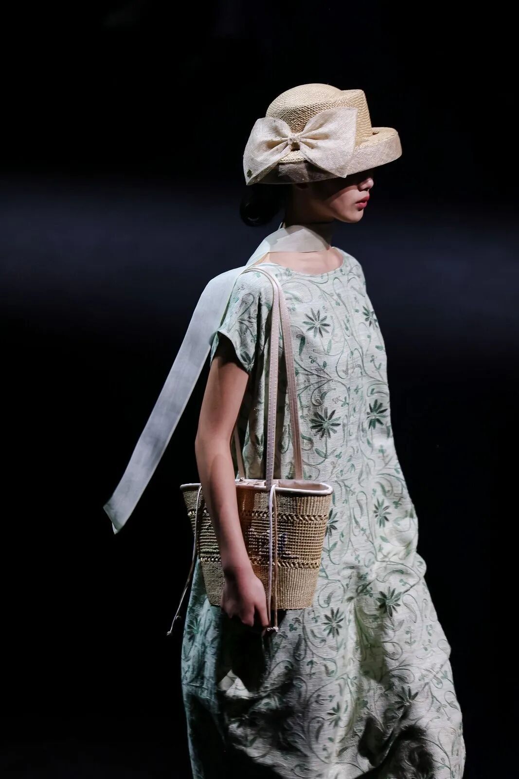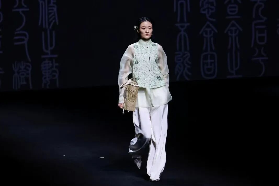 记者注意到,嘉定非遗徐行草编也在舞台上亮相。当模特身背草编包缓步而出,粗粝的黄草纤维与飘逸的衣袂巧妙搭配,古朴飘逸又不失灵动。