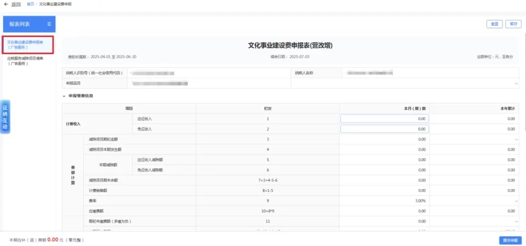 (二)文化事业建设费申报功能分为补录式申报、填表式申报。