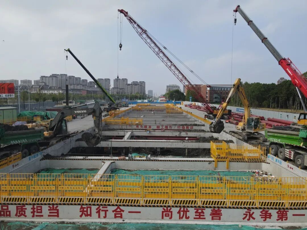 作为奉贤新城衔接上海主城区的重要交通节点,该站自开工以来,针对地墙、地基加固、工程桩、降水井等关键工程实施全周期精细化管控,为基坑开挖提供了坚实保障,更在110KV强电迁改的制约下实现施工高效推进。