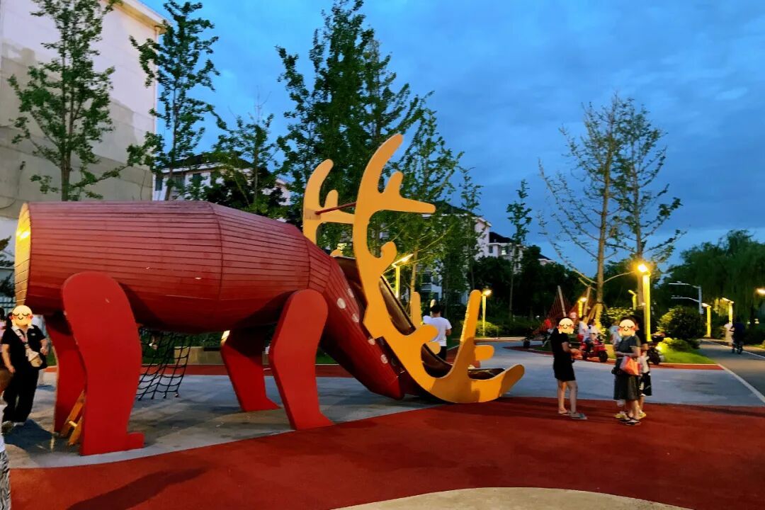 麋鹿滑滑梯上 孩子们肆意玩耍