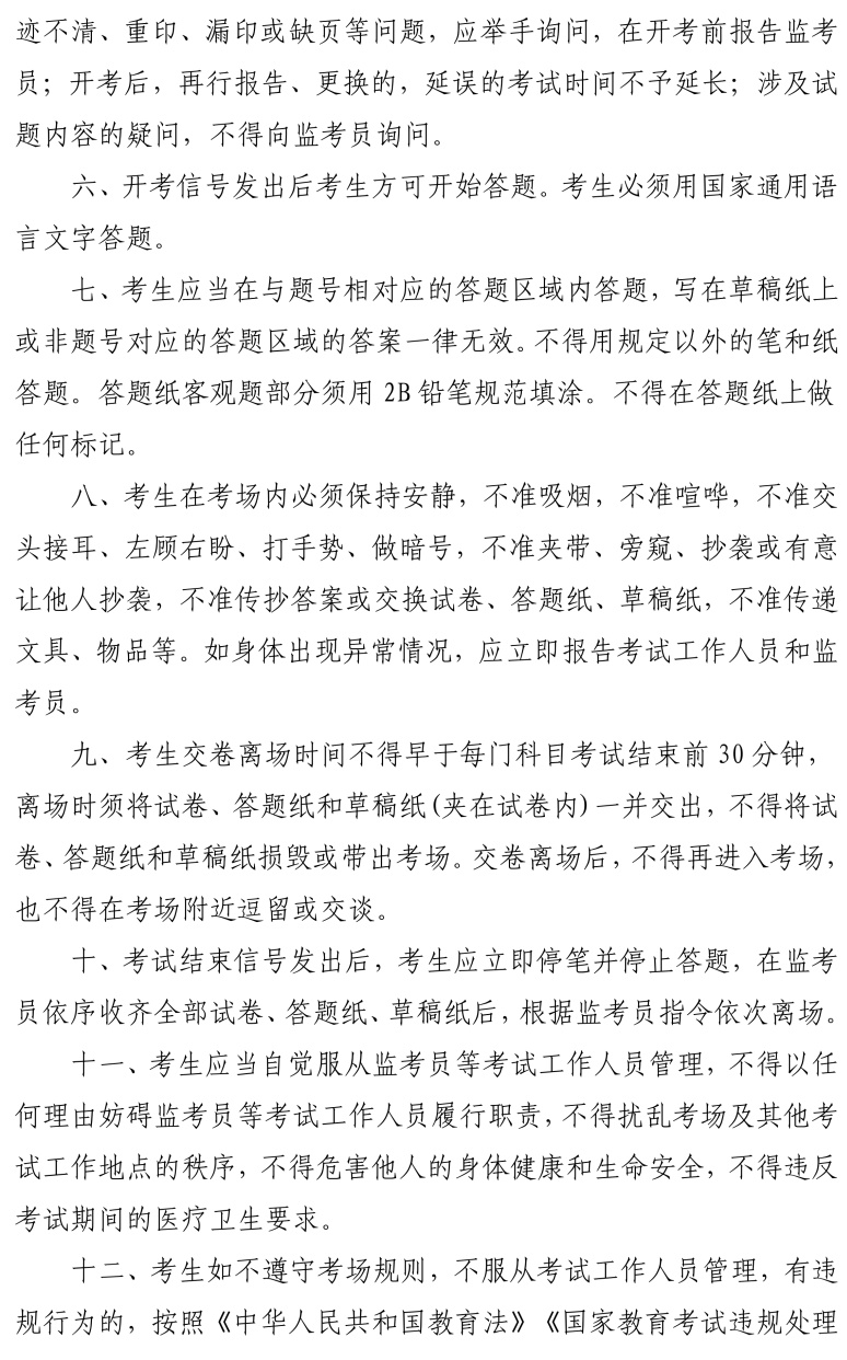 4.考生迟到15分钟后,不准进入考点参加当次科目考试;交卷出场时间不得早于每科目考试结束前30分钟。
