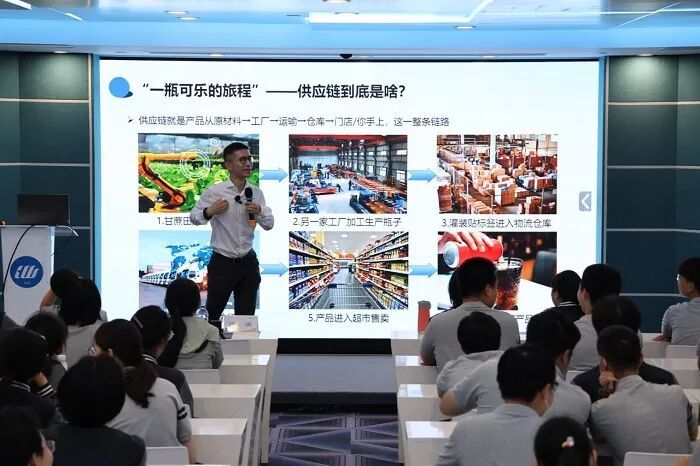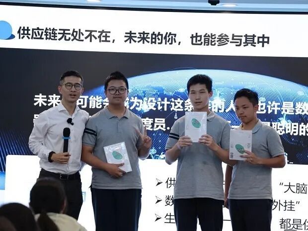 讲解环节中,沈滨教授用场景化案例降低理解门槛:以“一瓶可乐的旅程”拆解供应链“生产—运输—仓储—配送”全链路。从古代丝绸之路到二战物资供应,再到现代快递“当日达”,教授通过历史与现实对比,让同学们认识到供应链速度升级背后,是科技与管理学科的协同进步,初步建立对“管理学”这一学科的认知,为未来专业选择埋下伏笔。