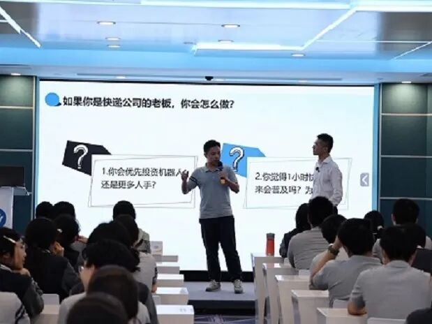 互动环节,“若你是快递公司老板,选机器运输还是人力运输”的问题引发热烈讨论。有同学从“成本控制”分析人力运输短期优势,有同学结合数字化知识提出“机器运输长远更高效”的观点。上台分享的同学展现清晰逻辑,更在观点碰撞中学会“职业决策需综合多维度分析”,这正是选修课培养批判性思维、助力人生规划思考的价值体现。