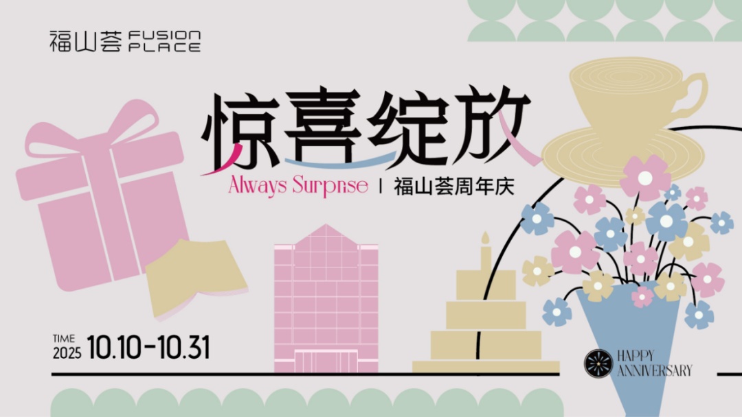 福山荟于10月10日至31日推出「惊喜绽放——Always Surprise」系列周年庆活动:集互动打卡抽奖、限定好礼派送、音乐演出、手作工坊于一体,更以万圣节奇趣派对收尾,用一场多元且充满诚意的盛宴,回馈周边人群一年来的陪伴与认可。