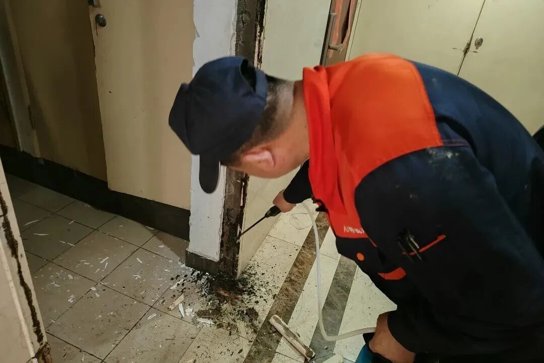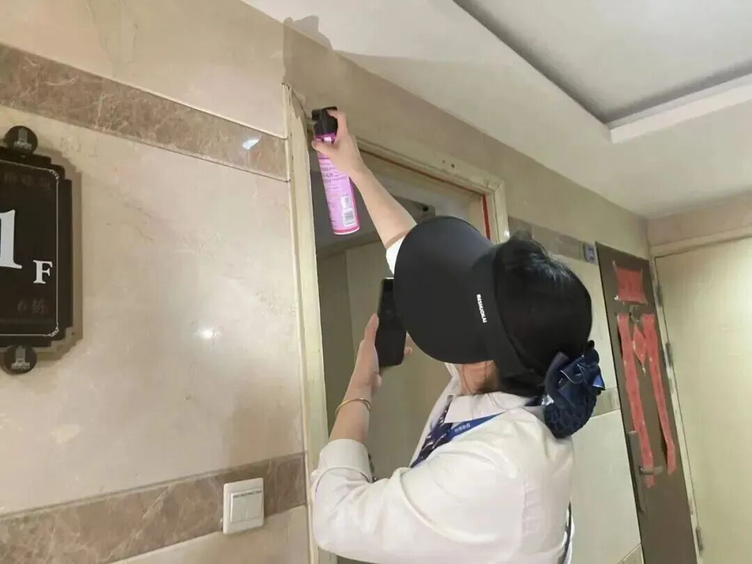 在为李阿姨完成消杀后的第三天,物业人员在巡查中发现,单元楼消防通道处的木制门框因年久受潮、缝隙增多,成为白蚁的“老窝”。单一消杀只能治标,需从根源入手。于是,阳光四居居委会、物业、业委会“三驾马车”协同商议,迅速安排专业师傅拆除木框,并对墙角死角进行“地毯式”消杀。