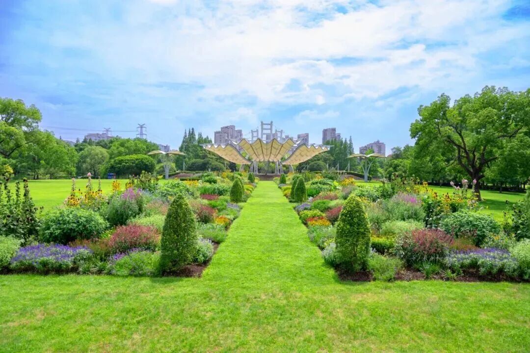 在闵行体育公园,既可在100多亩的锦绣湖上戏水泛舟,也能在千米花道上漫步赏花,还能体验全上海最长的山坡儿童滑梯。