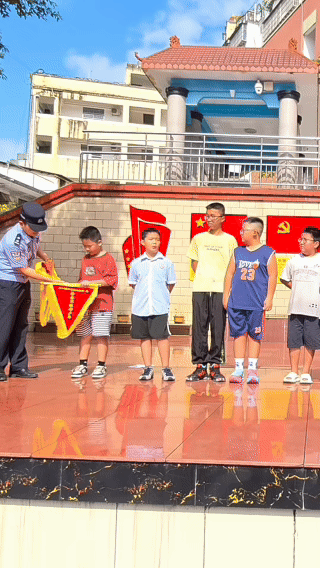 孩子们见到警察叔叔来送锦旗