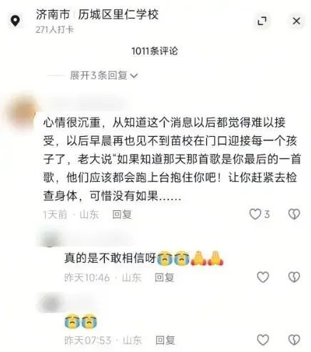 有网友写道:“人们都说好教师十年难遇,好校长更是百年难求。苗校长是一位真正的教育工作者,他用自己的实际行动践行了学为人师、行为世范的教育理念,愿先生一路走好。”