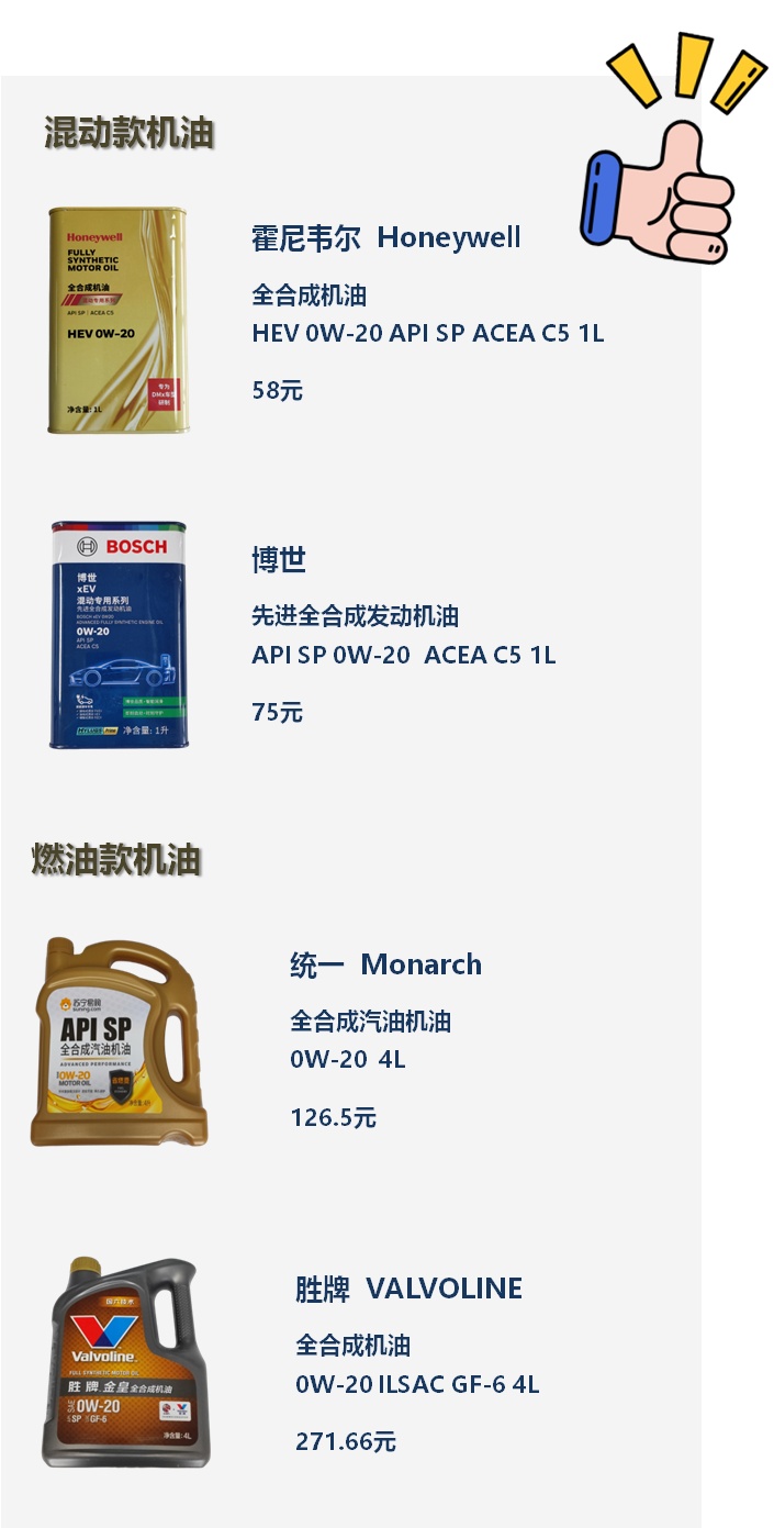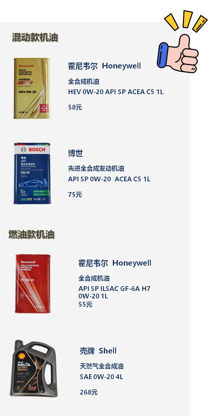建议车主根据实际驾驶情况选择机油:涡轮增压、高性能燃油车可选择高温保护性能更好的燃油机油;混动车更建议选用专为混合动力系统设计的机油,以确保在频繁启停工况下的综合保护性能。