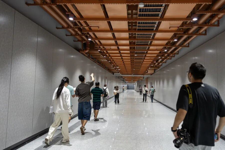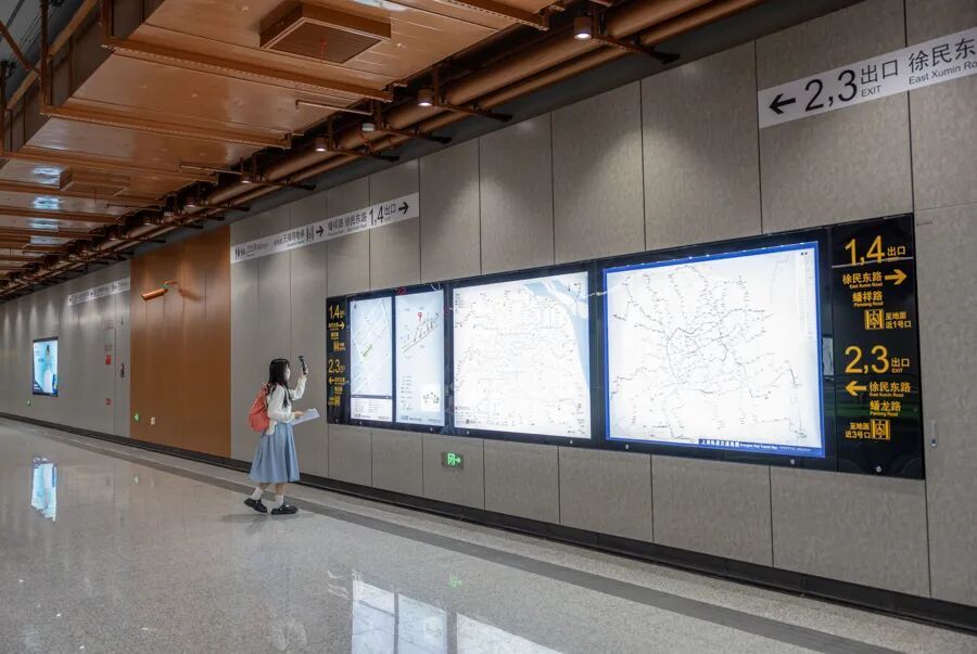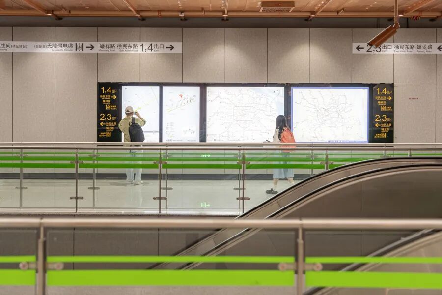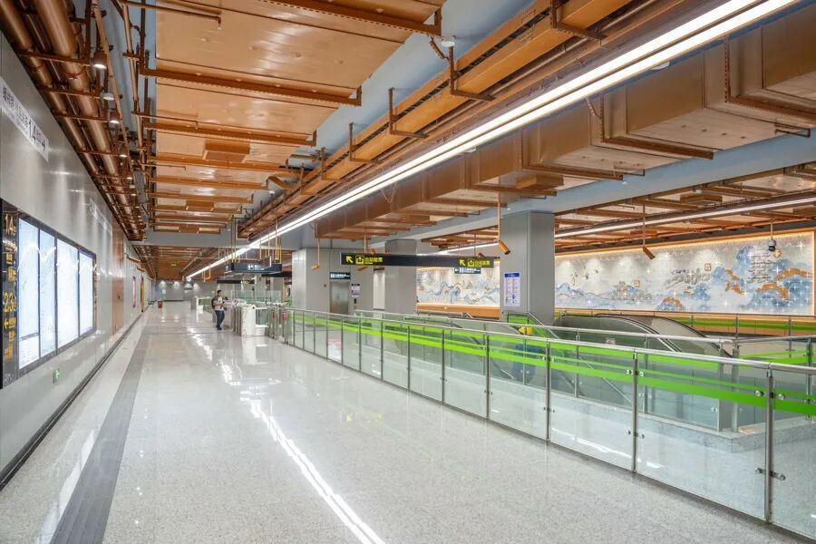 ▲蟠祥路·国家会计学院站以“金汇虹桥・律动蟠龙・一站一景”为设计脉络,萃取祥龙灵姿转化为建筑动感流线,将蟠龙古镇的文化基因融入现代建筑肌理,成为承载地域文化的“地下艺术展厅”。
