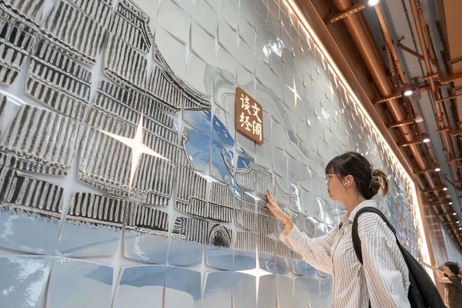 ▲30米长的“蟠龙十景”公共艺术墙是站厅的“文化灵魂”。