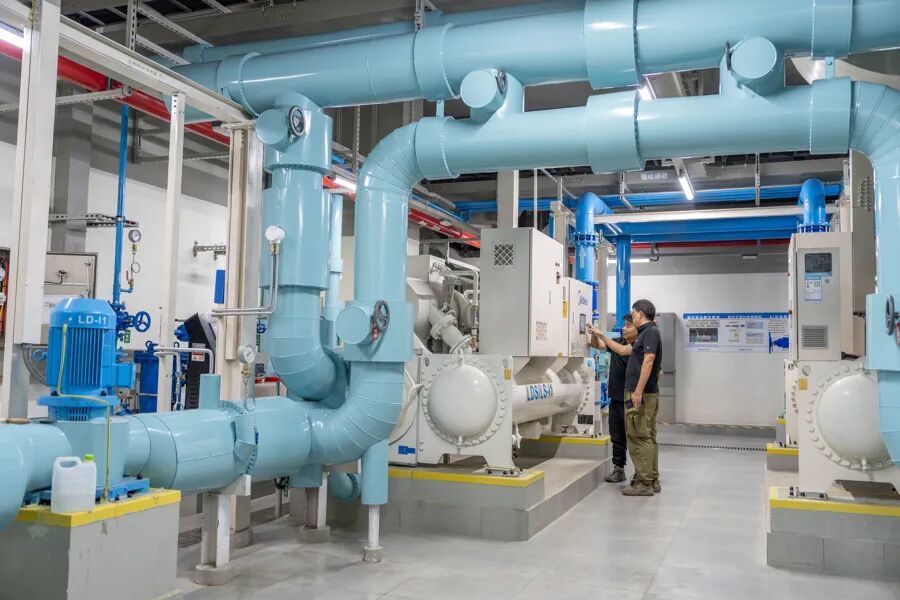 ▲蟠祥路·国家会计学院站藏着多项上海地铁“首次应用”的技术突破,数字化升级贯穿运营全流程。作为首个“装配式群控冷水机房”试点,公共区空调耗电量较传统车站节省30%。