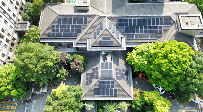 图为:上海金色榴乡园工作用房屋顶安装光伏板