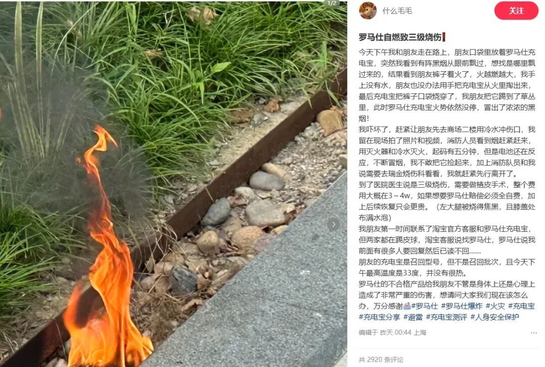 2025年7月,上海一小伙口袋里携带的充电宝突然起火当场被烧伤,经医院诊断为Ⅲ度烧伤,费用将达数万元。