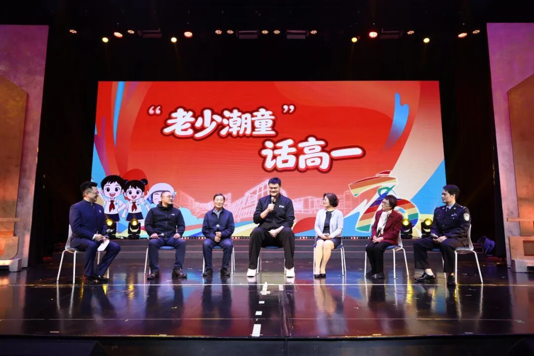 姚明的亮相,让访谈节目“‘老少潮童’话高一”成为校庆活动的焦点。在与主持人金炜的互动中,姚明满怀深情地回顾了那段“最无忧无虑”的童年时光。