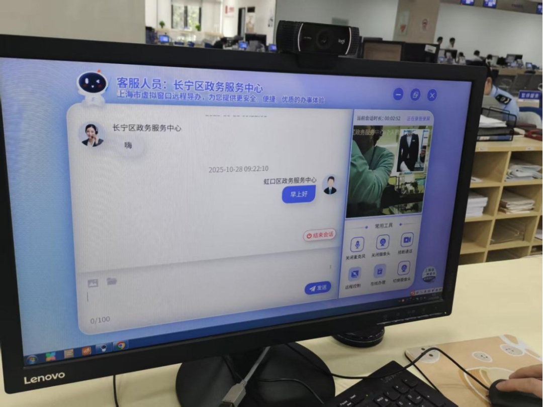 在帮办人员的协助下,李总通过大厅内的“上海市一网通办虚拟窗口”平台,与长宁区政务服务大厅的工作人员成功连线。借助高清音视频交互和屏幕共享功能,双方实现了“面对面”的实时沟通。长宁区的工作人员远程指导李总提交材料、完成线上操作,整个流程无缝衔接,李总顺利完成了企业的跨区变更办理手续。