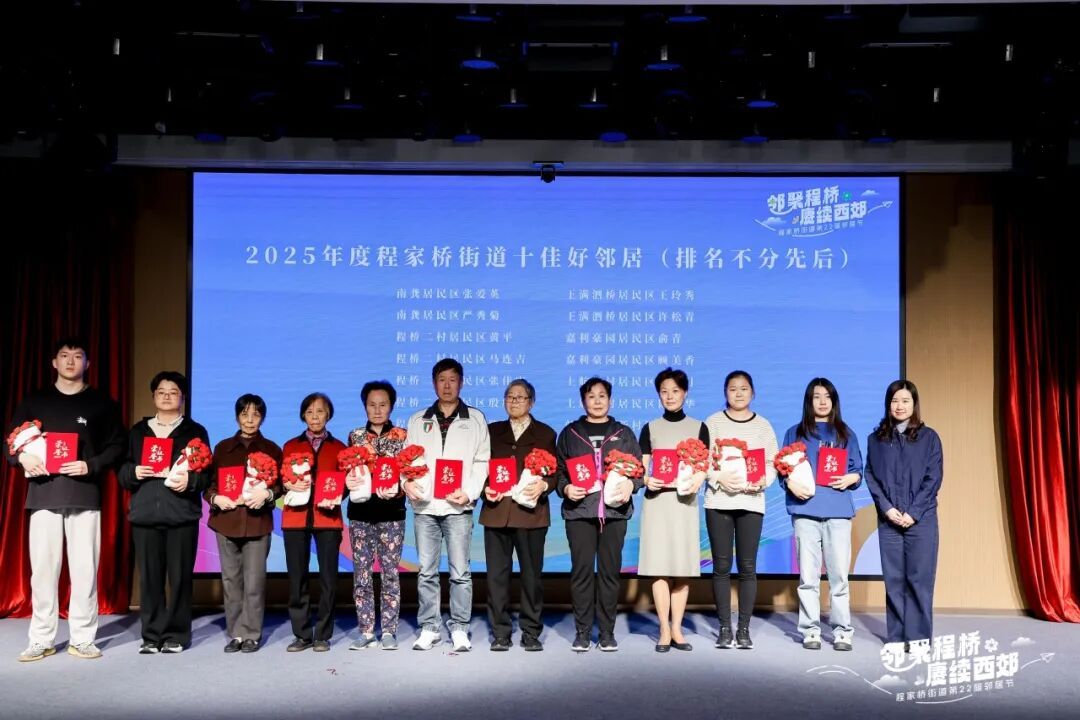 在推进社区治理现代化的进程中,程家桥街道涌现出一批“社区好榜样”。他们中,有资源联动、共建共享的优秀共建单位;有默默奉献、助人为乐的“十佳好邻居”;有社区治理“新力量”——新兴领域友好商铺;更有扎根一线、为民服务的红色业委会、红色物业,以及积极参与“美好家园”建设的行动者们。他们用自己的行为诠释了责任与担当,活动现场为这些“社区好榜样”代表进行了授牌。