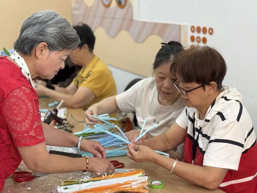 在定海路街道社区第一睦邻中心,DIY手工区也充满欢笑,大家在志愿者指导下用扭扭棒制作精美的铃兰提灯。从延吉新村街道的艾草枕、养生锤DIY,到月亮灯的手工体验,再到大桥街道“指尖上的年华”手工坊里的剪纸、编织、书法,这些“慢”下来的手作体验,正精准满足长者们对品质生活和动手乐趣的需求。