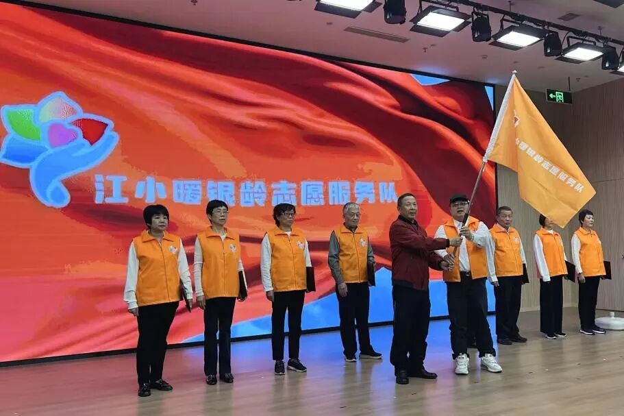 “老有所为”的理念,在江浦路街道辽源党群服务中心举办的重阳节活动中,被编织进了社区治理的“五色花”中。情景剧《五色花开暖江浦》直观呈现了关爱特殊困难老人的“5+3+5”机制;而“江小暖·银龄志愿服务队”的授旗,则象征着这支由低龄、健康老人组成的“明星天团”,正式成为“社区织补者”。他们退休不褪色,正是“以老助老”的最佳写照。