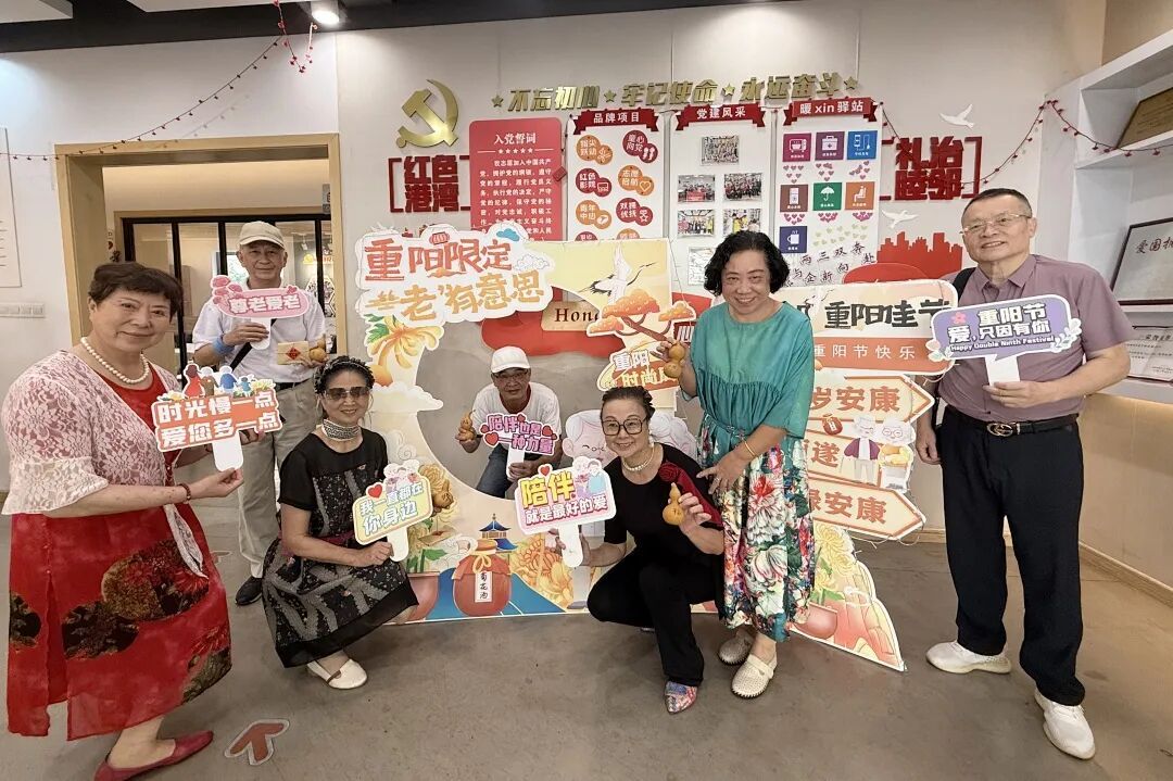 这种“潮”,也体现在由殷行街道社区党群办携手包头路睦邻中心举办的“重阳限定 ‘老’有意思”系列活动中。人气最高的“重阳时尚局”,让老同志们在精心设计的主题背景板前化身“时尚主角”,自信地留下影像。这背后,是新时代老年人对美好生活和自我形象的积极追求。