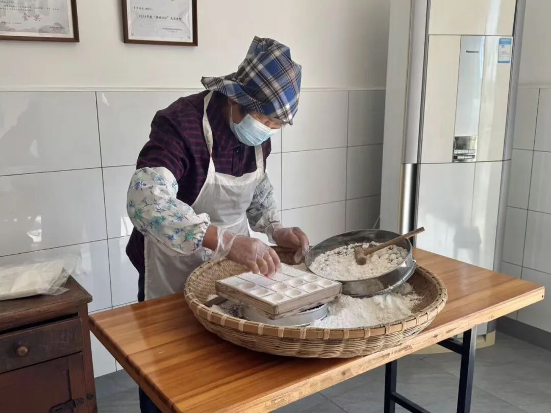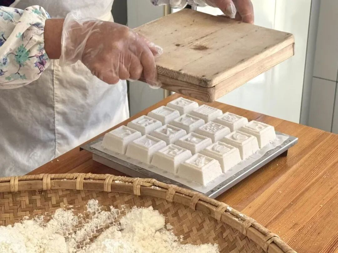 叶榭软糕始于明万历元年(1573),迄今已有450余年的制作历史。传统软糕米香浓郁,滋味甜蜜,背后更是一份传承和念想。当天,非遗软糕制作人李红花与家人一大早便忙活起来。细薄柔滑的米粉由粳米、糯米、绵白糖等原料按比例混合后研磨而来。李红花将米粉筛入特制模具,加入自制豆沙馅料。经过筛粉压实,倒扣脱模隔水蒸制等步骤,一块块米糕新鲜出炉,送至各辖区老人手上。“重阳节是敬老的日子,吃糕、做糕是我们的传统民俗。”李红花说,“想用这份老祖宗传下来的手艺,让村里的老人们都尝一尝‘老味道’,也祝愿老人们‘九九长寿’,讨一个好彩头。”