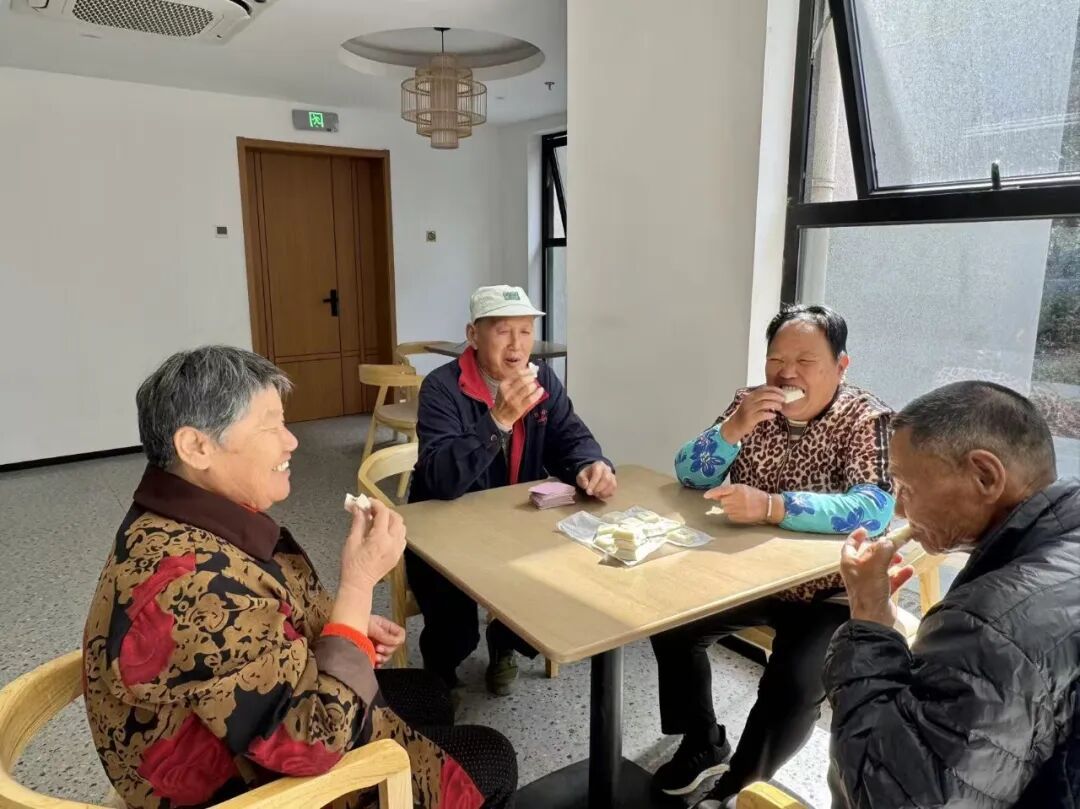上午10时,叶榭镇东石村平移点老年活动室内暖意融融。志愿者们为辖区老人现场分发热气腾腾的软糕。新鲜出炉的叶榭软糕形如白玉,一口下去松软甜香,现场,气氛温馨动人。“又糯又甜,很好吃,特别暖心。”沈国英告诉记者。