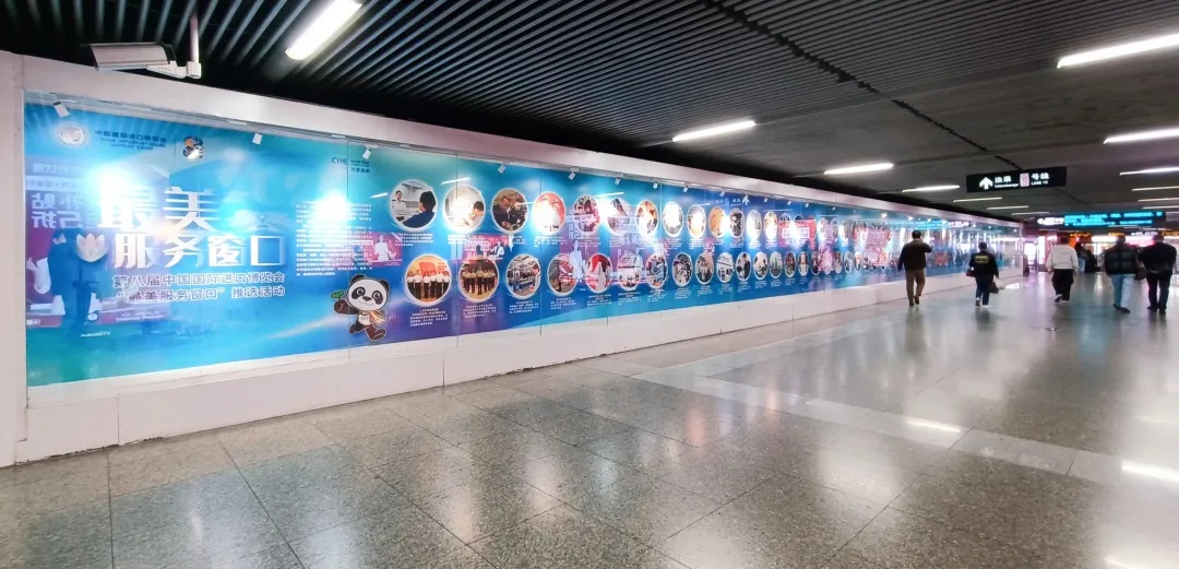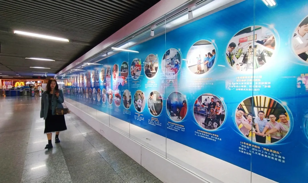 近日,上海地铁南京东路站文化长廊更新“进博最美服务窗口评选展示活动”主题展览,100个“上海品牌” 服务窗口围绕 “服务民生,保障进博”,集中展示服务规范、创新亮点等筹备成果,吸引乘客驻足。包括2号线国家会展中心站“畅行展护卫”服务团队、2、10、17号线虹桥火车站站“小煜流星轮”服务团队和“虹火之光”党建品牌、15号线景洪路站“领航员”服务团队等悉数亮相,他们将以精细化管理和创新服务,为海内外乘客打造安全、便捷、温暖的出行体验,让“最美地铁窗口”成为护航进博的亮丽名片。