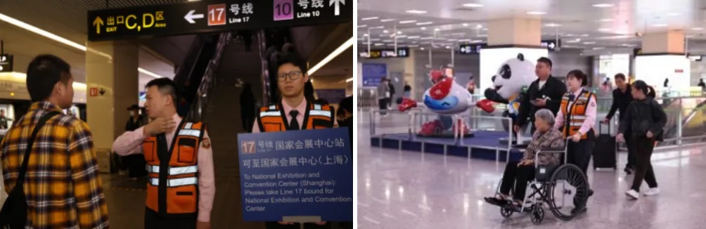 为筑牢保障防线,车站升级打造“多维护航体系”:以实战化预案演练夯实安全基础,针对大客流疏导、应急处置等场景开展专项演练;推行“双语领航计划”,优化进博双语导向标识与问询服务,助力中外乘客顺畅出行;深化服务礼仪提质行动,规范服务标准、提升响应效率;服务团队联动进博党建联盟,创新融入“多格合一”志愿服务模式,整合网格管理与志愿力量,组建专项服务专班,在客流疏导、咨询引导、爱心帮扶等关键环节精准发力;设备团队严格管控车站改造施工安全,兼顾设施升级与运营安全,杜绝安全隐患。通过全流程、全方位的保障举措,车站将持续为进博会营造安全、有序、温馨的出行环境,彰显地铁服务的责任与温度。