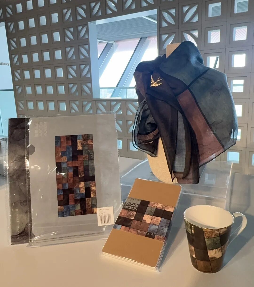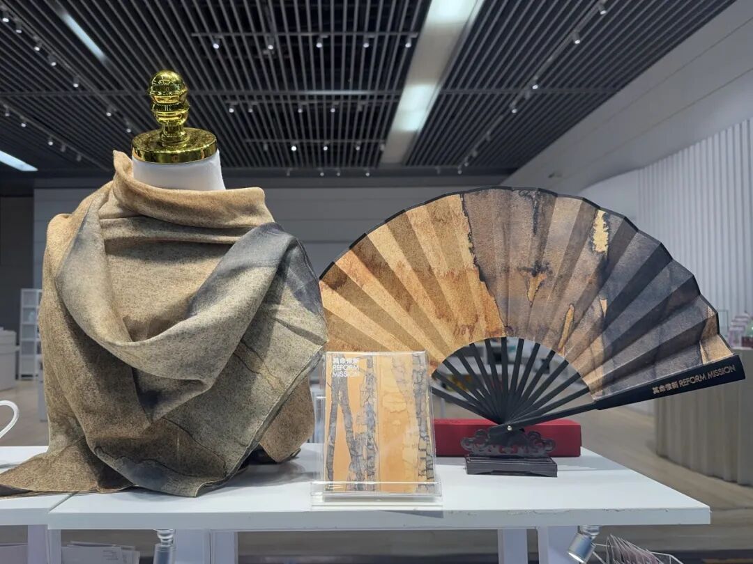 系列文创包括:巴里纱方巾、艺术折扇、创意笔记本……