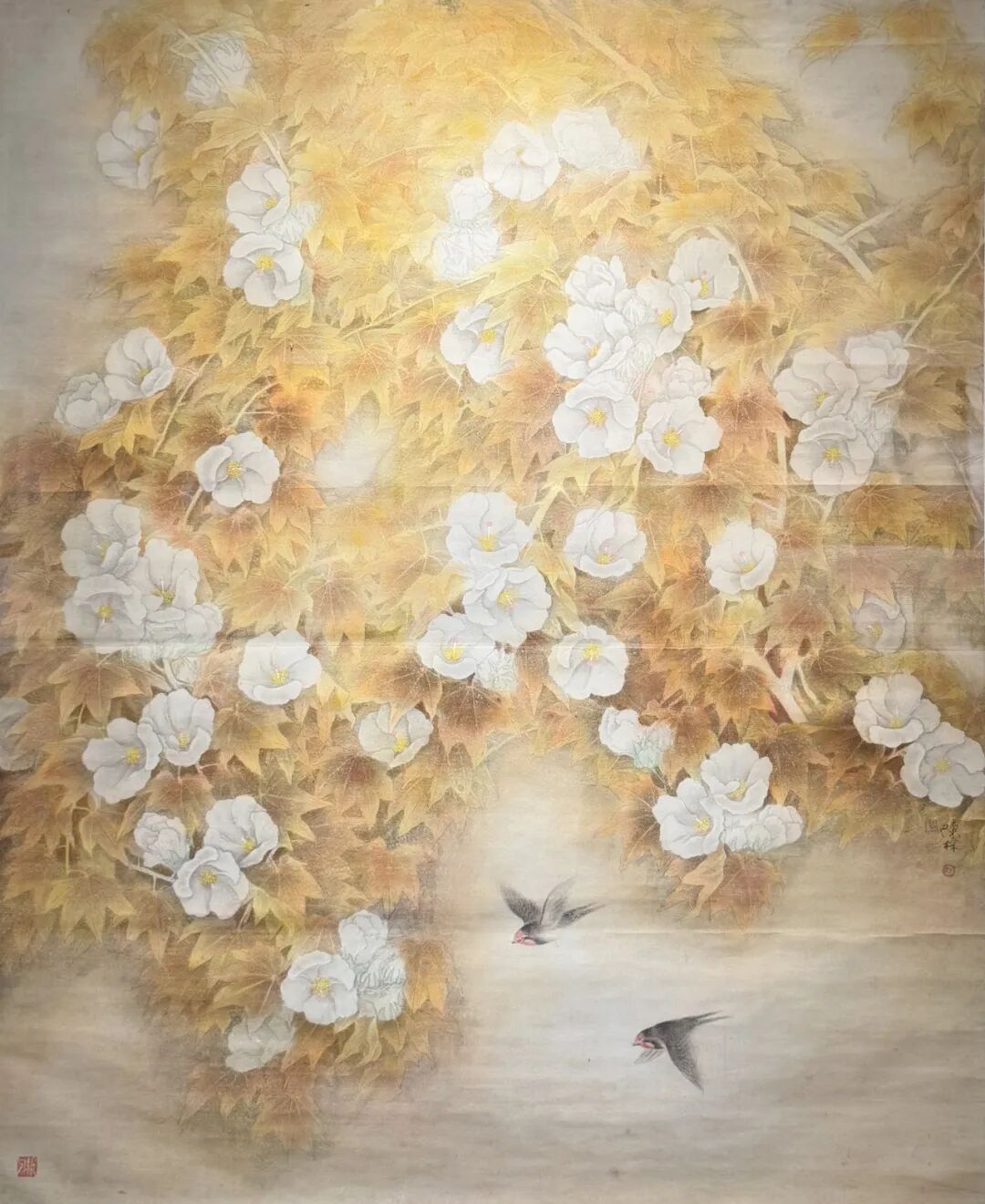 取自陈林《处处芳菲(金色年华)》中双燕翩飞的春日意象